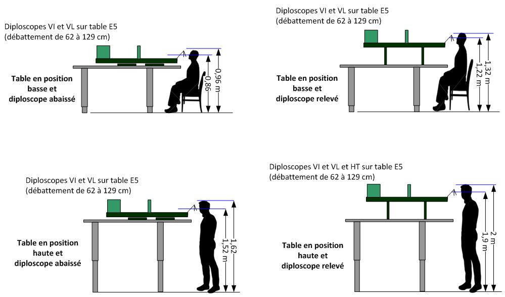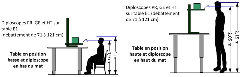 Ces tables assis-debout permettent d’amplifier le débattement en hauteur des diploscopes.